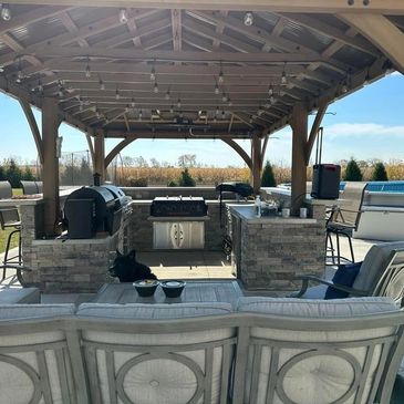 Our services extend beyond outdoor kitchens. We construct gazebos, cabanas, pools, decks, and interlocking, all tailored to your unique requirements. To give you a glimpse of the final outcome, we provide a detailed 3D design before commencing the project, guaranteeing that your vision is realized with meticulous attention to detail and craftsmanship.